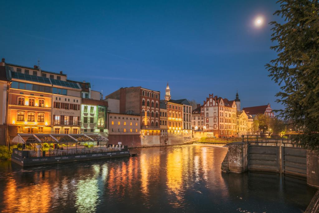 Gelegen am schönen Mühlgraben, der das direkte Stadtzentrum von dem ruhigen Villenviertel der Stadt trennt - Pasieka-Insel - gehört zu den zauberhaftesten und romantischsten Orten in Opole. Die alten Bürgerhäuser spiegeln sich im Wasser wider - am schönsten in der Nacht, wenn sie bunt beleuchtet sind. Die Promenade entlang des Kanals ist ca. 1,3 km lang und führt zu der direkt am Oppelner Woiwodschaftsamt lokalisierten Schloss-Brücke bis zur Straße ul. Korfantego sehen. Zahlreiche mit Steinpflaster ausgelegte Wege, schmuckvolle niedrige Mauern, Steingärten und bequeme Wege zum Wasser machen jeden Spaziergang zum wahren Vergnügen. Es gibt hier auch zahlreichen Bänke und einen Holzsteg mit Ausblick. Das ist ein wahrer Traumort für alle Fahrradfahrer, Läufer oder Nordic Walking Fans.