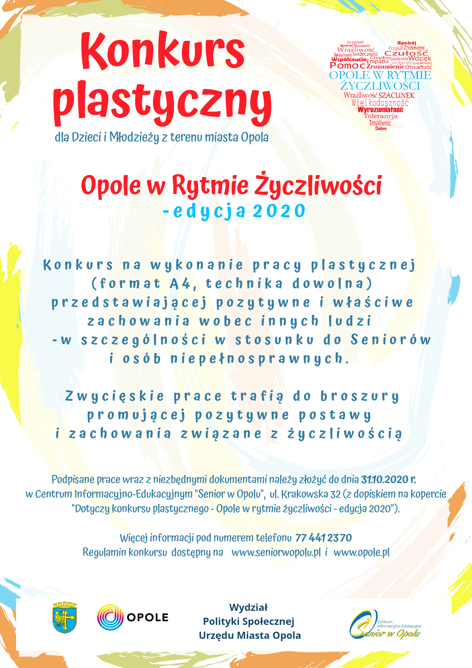 Prezydent Miasta Opola Arkadiusz Wiśniewski serdecznie zapraszamy dzieci i młodzież z terenu Miasta Opola do udziału w konkursie plastycznym ,,Opole w Rytmie Życzliwości - edycja 2020".