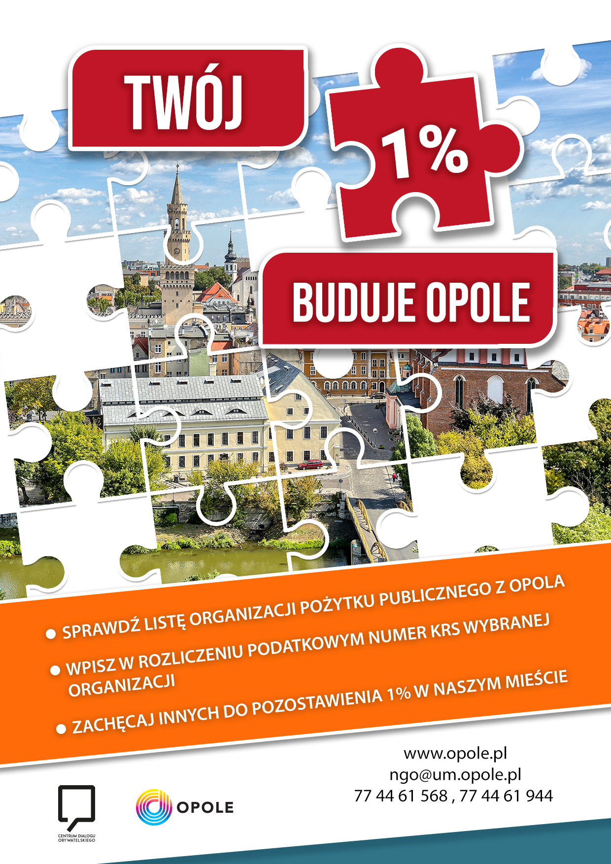 Twój 1% Buduje Opole. Pod takim hasłem Miasto Opole realizuje kampanię zachęcającą podatników do przekazania swojego 1% podatku dochodowego na wybraną organizację pożytku publicznego, posiadającą siedzibę w Opolu.