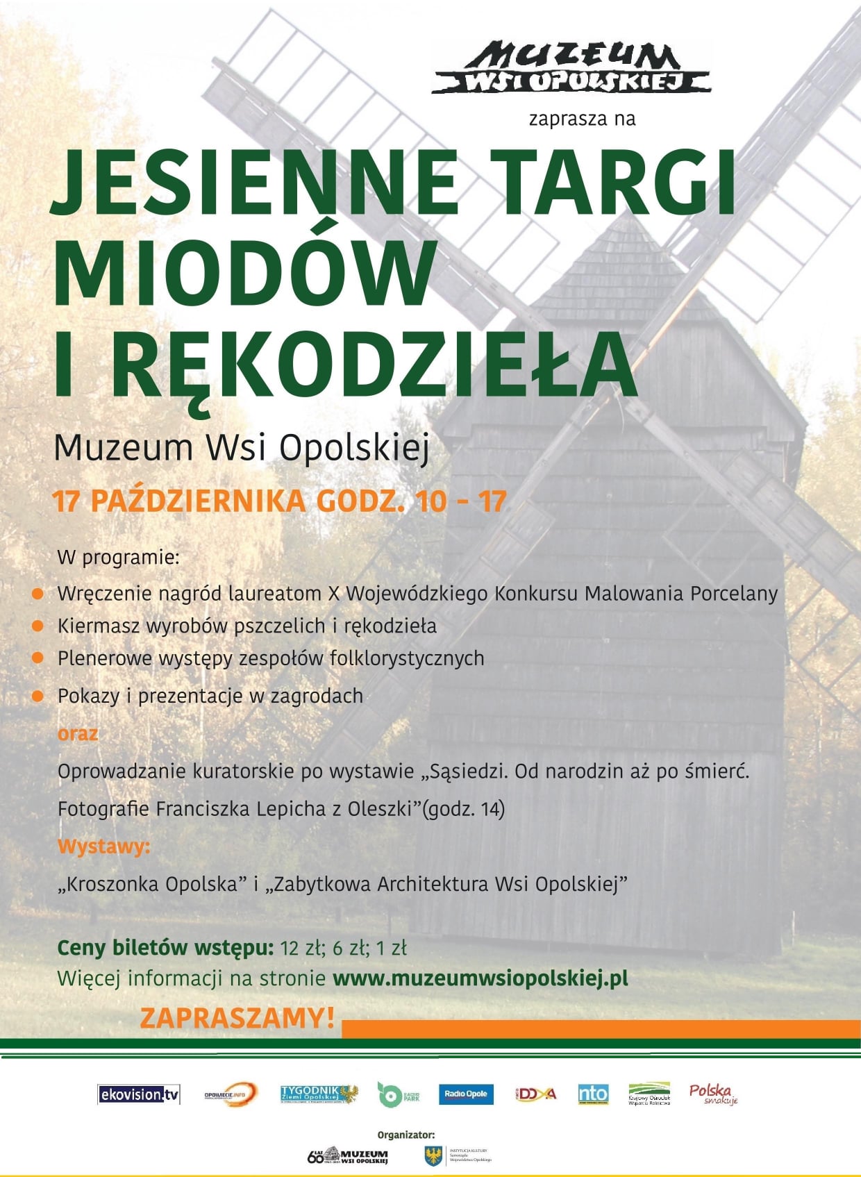 Już w najbliższą niedzielę (17 października) o godzinie 10:00 w Muzeum Wsi Opolskiej odbędą się Jesienne Targi Miodów i Rękodzieła. Będzie to już ostatnia w tym sezonie impreza plenerowa w opolskim skansenie.