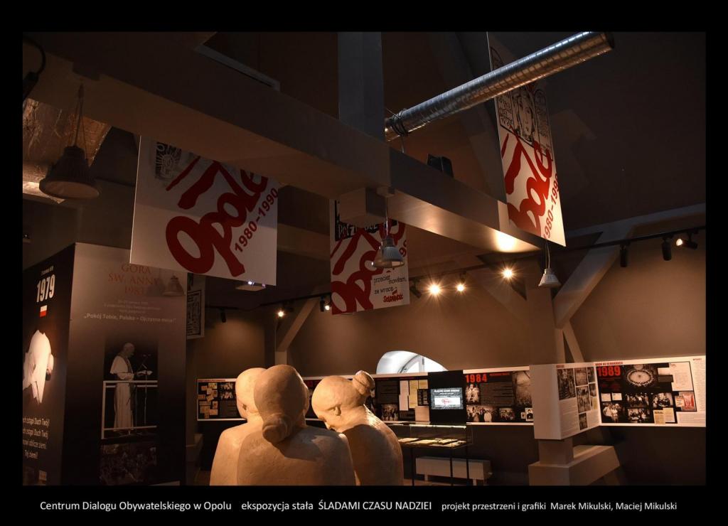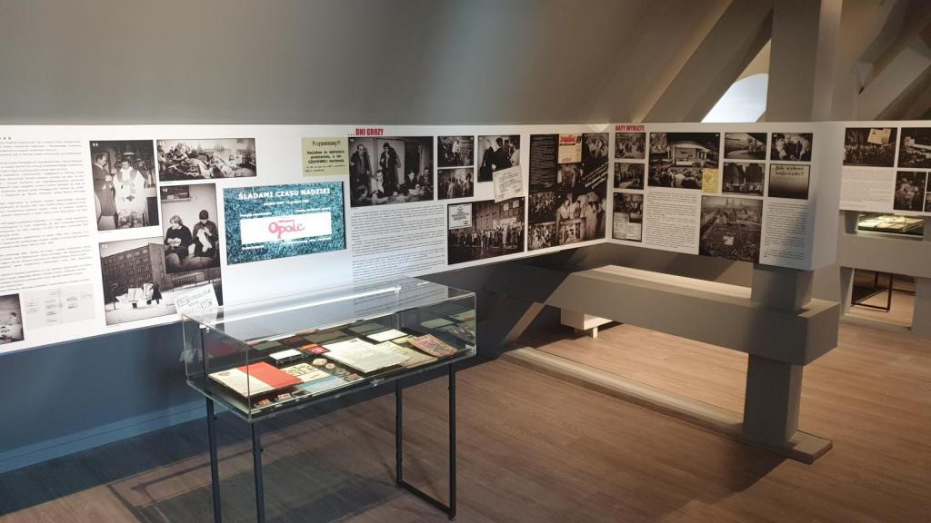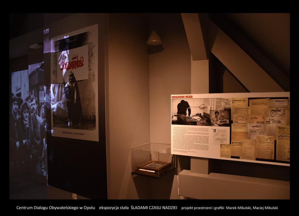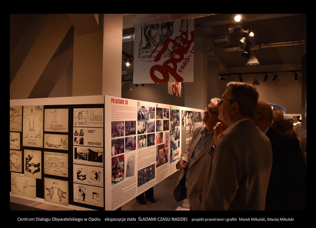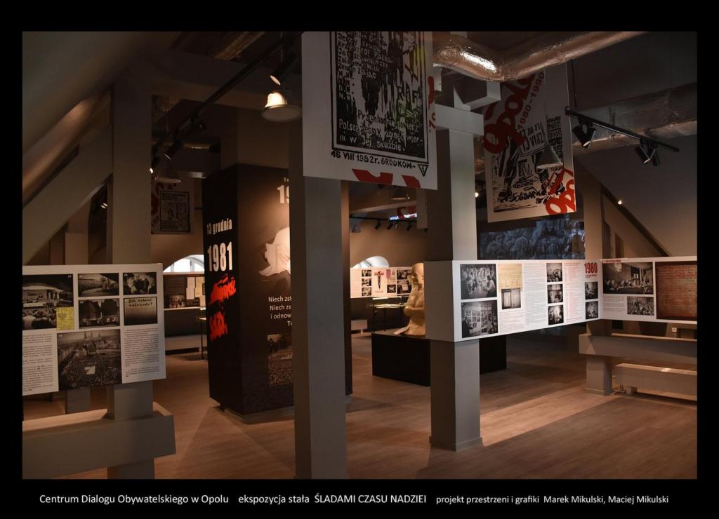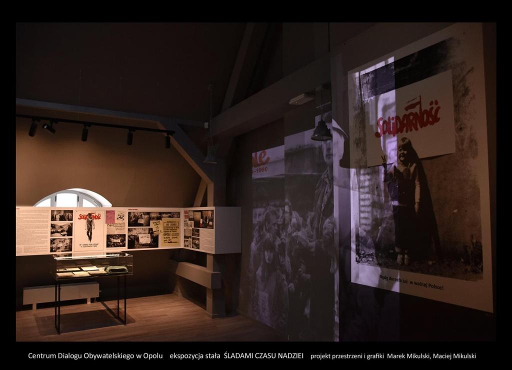 Wystawa „Śladami czasu nadziei” jest ekspozycją stałą, poświęconą ludziom i wydarzeniom, dzięki którym na Opolszczyźnie zakończył się PRL. Pomysłodawcą i orędownikiem jej powstania jest Ś.P. Roman Kirstein – przewodniczący MKZ Opole NSZZ „Solidarność”, jeden z założycieli „Solidarności” w województwie opolskim oraz Zasłużony Obywatel Miasta Opola. Dzięki jego wielkiemu sercu i pracy, udało się ocalić od zapomnienia jakże ważną część polskiej drogi do wolności. W inicjatywę utworzenia Izby Pamięci Solidarności został zaangażowany zespół ekspertów, a materiały, wyeksponowane na wystawie pochodzą od wielu mieszkańców naszego województwa, którzy uczestniczyli w wydarzeniach tamtego okresu. Wystawa, „Śladami Czasu Nadziei”, pokazuje ludzi, wydarzenia i fakty. Interpretacje i ocenę pozostawia odwiedzającym.