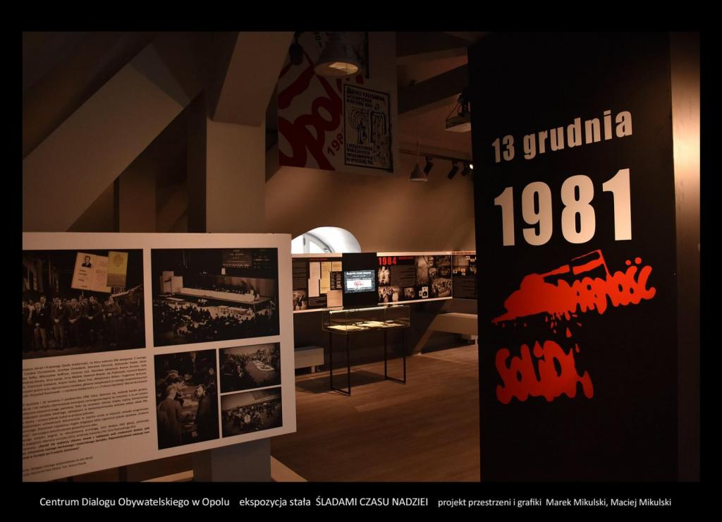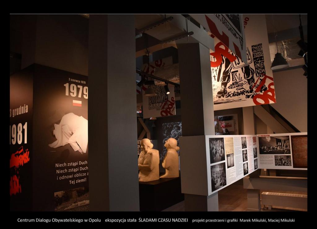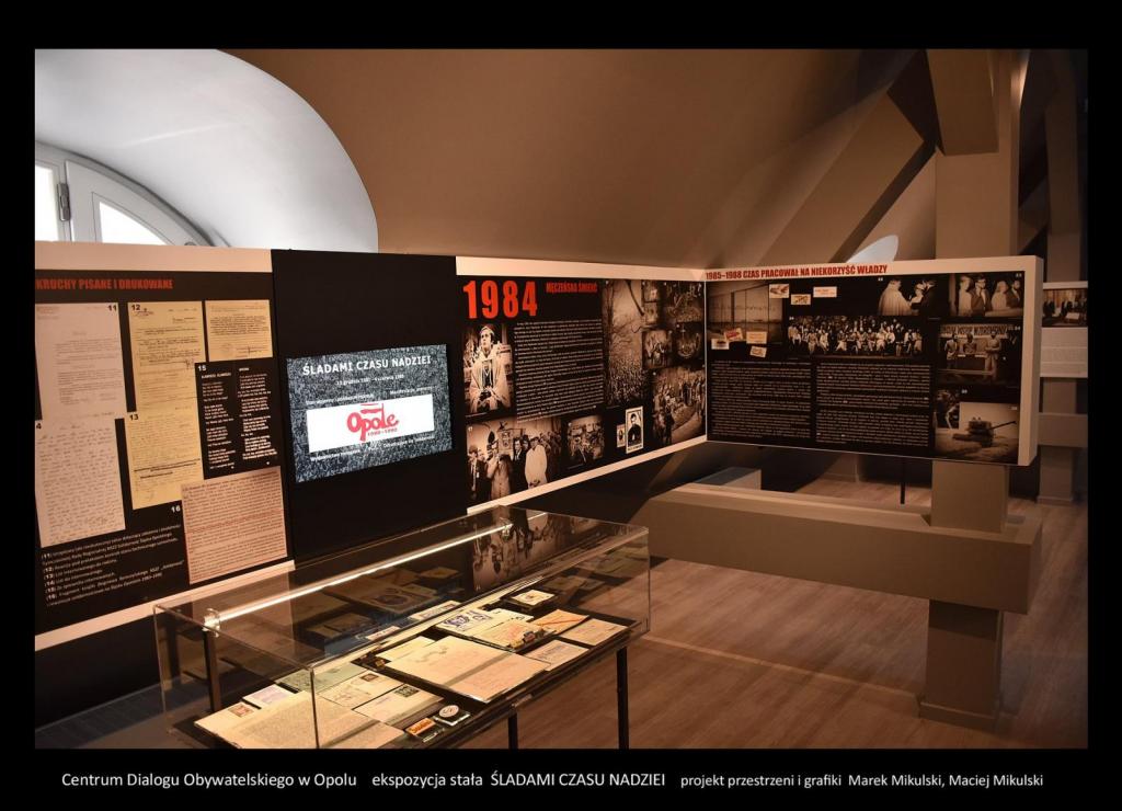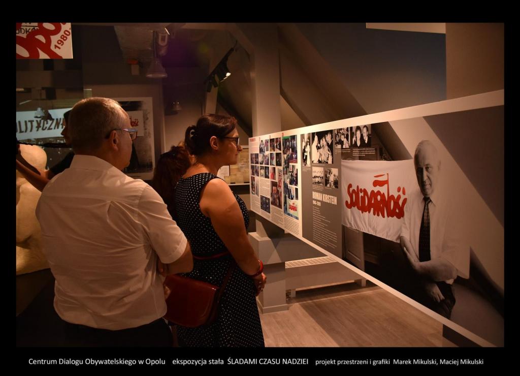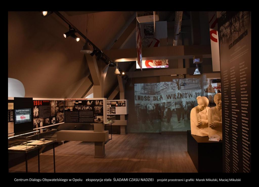 Wystawa „Śladami czasu nadziei” jest ekspozycją stałą, poświęconą ludziom i wydarzeniom, dzięki którym na Opolszczyźnie zakończył się PRL. Pomysłodawcą i orędownikiem jej powstania jest Ś.P. Roman Kirstein – przewodniczący MKZ Opole NSZZ „Solidarność”, jeden z założycieli „Solidarności” w województwie opolskim oraz Zasłużony Obywatel Miasta Opola. Dzięki jego wielkiemu sercu i pracy, udało się ocalić od zapomnienia jakże ważną część polskiej drogi do wolności. W inicjatywę utworzenia Izby Pamięci Solidarności został zaangażowany zespół ekspertów, a materiały, wyeksponowane na wystawie pochodzą od wielu mieszkańców naszego województwa, którzy uczestniczyli w wydarzeniach tamtego okresu. Wystawa, „Śladami Czasu Nadziei”, pokazuje ludzi, wydarzenia i fakty. Interpretacje i ocenę pozostawia odwiedzającym.