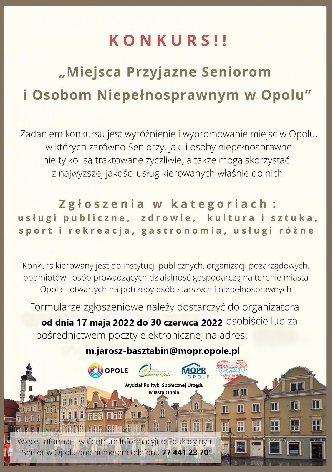 Serdecznie zapraszamy do udziału w V edycji konkursu „Miejsca Przyjazne Seniorom i Osobom Niepełnosprawnym w Opolu" - Edycja 2022.