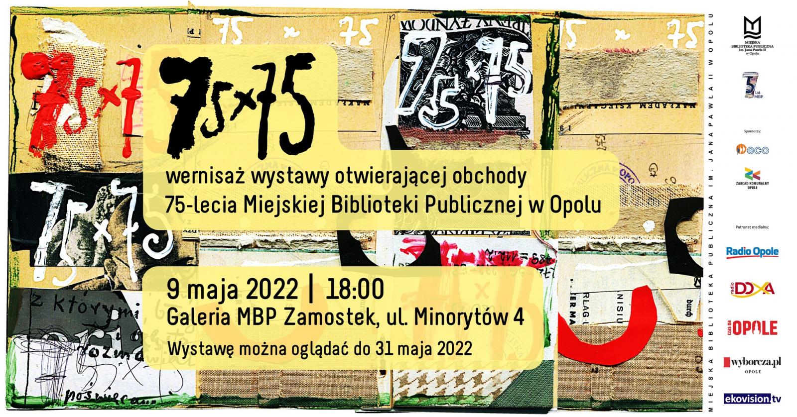 Wystawa 75x75 została przygotowana z okazji jubileuszu 75-lecia Miejskiej Biblioteki Publicznej w Opolu. Ekspozycja prezentuje zbiory biblioteczne wydane w 1947 roku, ponieważ w tym samym czasie otwarto pierwszą placówkę biblioteki miejskiej. Całość stanowi zatem kalendarium publikacji tamtego okresu. Na jubileuszowej wystawie są m.in. te książki, które były w zbiorach MBP, później zostały wycofane, lecz trafiły z powrotem do biblioteki i znalazły się w zbiorach specjalnych (dowodem tego są pieczątki oraz numery inwentarzowe ukazujące historię poszczególnych publikacji i informujące o kolejnych właścicielach zbiorów). Są również książki, które biblioteka otrzymała od kolekcjonerów; z autografami, imiennymi ekslibrisami – ukazującymi literackie upodobania darczyńców. Na ekspozycji zobaczymy, m.in. książki z Wydawnictwa Trzaski, Everta i Michalskiego, Wydawnictwa Księży Pallotynów, Wydawnictwa Zachodniego z Poznania, Wydawnictwa Św. Krzyża w Opolu, Wydawnictwa Milicji Niepokalanej czy Księgarni św. Jacka w Katowicach. Publikacje podzielono na literaturę popularnonaukową, literaturę piękną oraz książki o tematyce regionalnej.