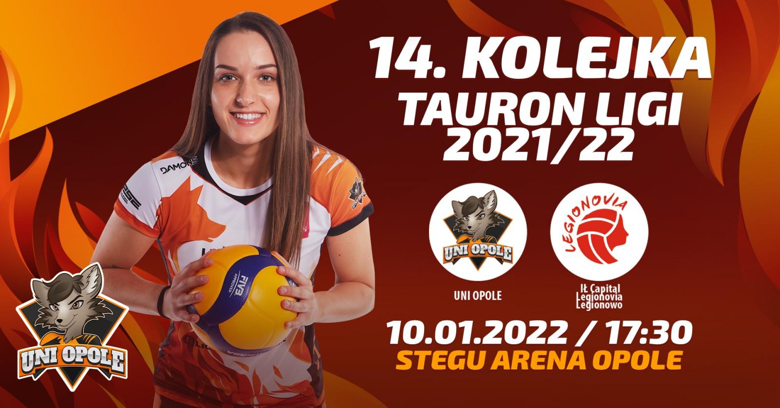 W 14. kolejce UNI Opole podejmie w Stegu Arenie Opole Legionovię Legionowo, aktualnie trzecią drużynę w klasyfikacji TAURON Ligi 2021/22. Kibiców Wilczyc z Opola i sympatyków siatkówki zapraszamy na mecz w poniedziałek 10 stycznia o godz. 17:30.