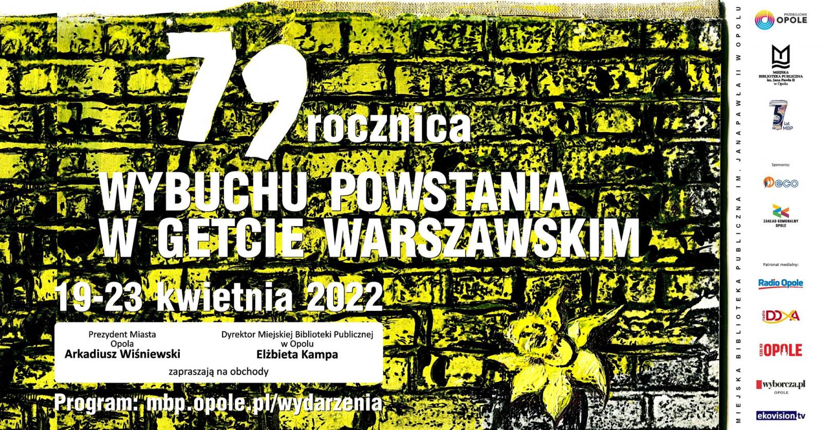Prezydent Miasta Opola Arkadiusz Wiśniewski oraz Dyrektor Miejskiej Biblioteki Publicznej im. Jana Pawła II w Opolu Elżbieta Kampa zapraszają na obchody 79 rocznicy wybuchu powstania w getcie warszawskim.