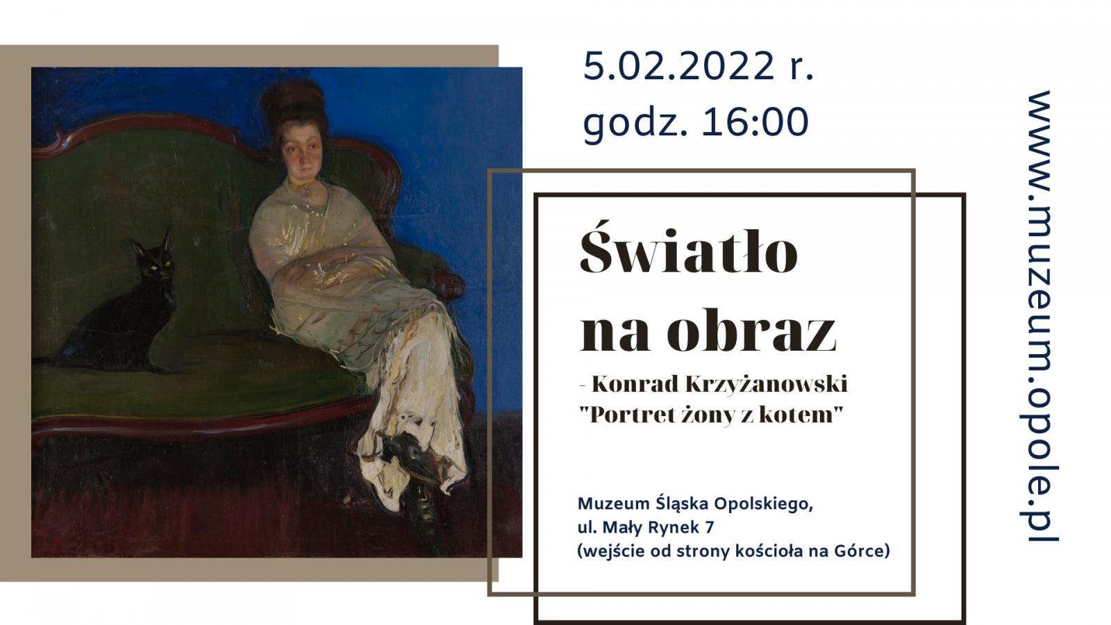 W pierwszą sobotę lutego skierujemy światło na obraz Konrada Krzyżanowskiego Portret żony z kotem