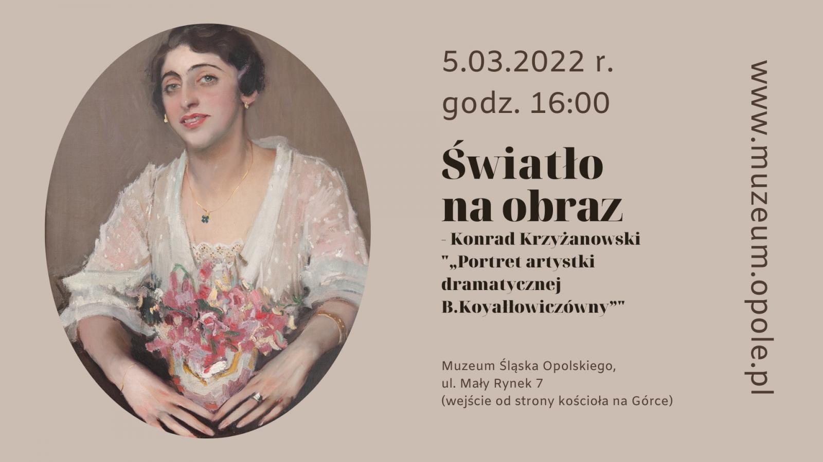 „Portrety p. Krzyżanowskiego po postu żyją, wychodzą z ram, uderzają niezmierną siłą wyrazu, jakąś potęgą kolorytu i nastroju.” – tak o wystawionych obrazach artysty w 1901 roku w Salonie Krywulta pisał w „Wędrowcu” Kazimierz Daniłowicz-Strzelbicki, chwaląc za doskonałość, ekspresję, oryginalność. Portret B. Koyałłowiczówny z naszych zbiorów będzie punktem wyjścia opowieści o życiu i twórczości Krzyżanowskiego, a zwłaszcza o jego malarstwie portretowym. Konrad Krzyżanowski (1872-1922) – znakomity portrecista i pejzażysta, reprezentant wczesnego ekspresjonizmu i jeden z najwybitniejszych przedstawicieli warszawskiego środowiska malarskiego epoki modernizmu. Okazją do przypomnienia jego twórczości jest przypadająca w tym roku 150. rocznica urodzin artysty.
