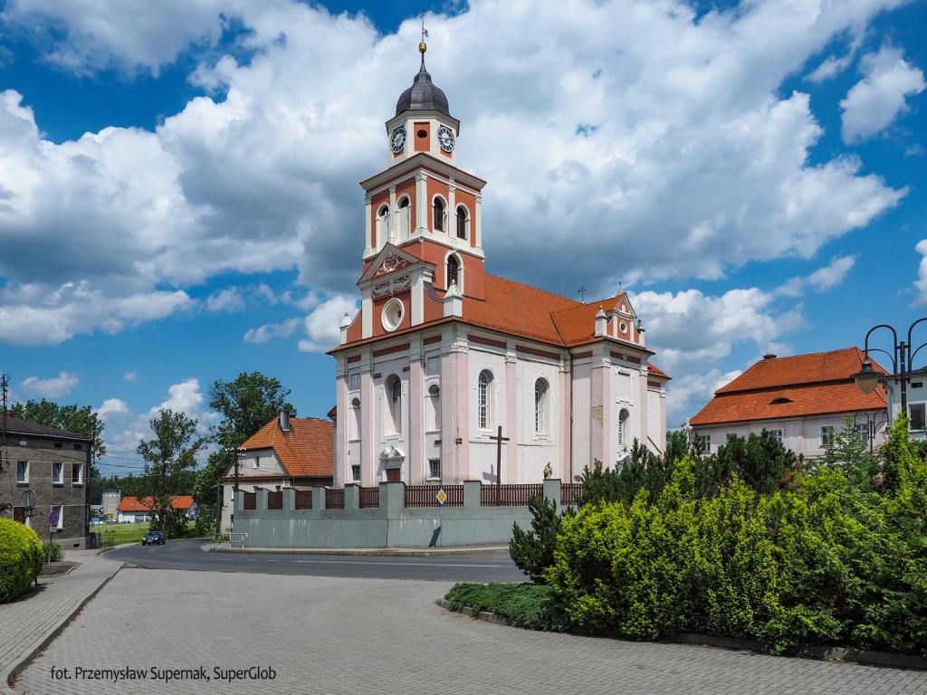 Za Pomologią wjeżdżamy na ciąg pieszo-rowerowy i dojeżdżamy do Prószkowa. Miasteczko warte jest dłuższego postoju. Na północnym skraju Rynku stoi barokowy Kościół Św. Jerzego. Ufundował go w 1578 r. hrabia Jerzy Prószkowski, jednak drewniany kościół stał w tym miejscu już w średniowieczu. Murowana świątynia spłonęła podczas wojny trzydziestoletniej. Odbudowano ją w 1687 r. Do dziś zachowały się rzeźby św. Piotra i Pawła, barokowe ołtarze, piękna loża kolektorska Prószkowskich, ambona i trzy 400-letnie dzwony. W Rynku i okolicach zachowało się kilka dawnych kamieniczek. Niedaleko stoi stary Browar Krombholtza, ciekawostka dla pasjonatów dawnej architektury przemysłowej. Ciekawy jest też niedawno powstały park tuż za charakterystycznym budynkiem Nadleśnictwa Prószków z rzeźbionymi głowami jeleni na fasadzie. Z umieszczonych w nim tablic edukacyjnych dowiecie się wielu intersujących rzeczy o leśnej florze i faunie.