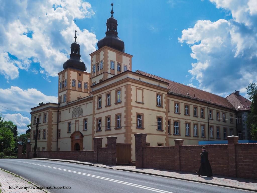 Jednak największym zabytkiem miasteczka jest Zamek Prószkowskich zaprojektowany został przez włoskich architektów, a jego budowę zainicjował hrabia Jerzy Prószkowski w 1563 roku. Podczas potopu szwedzkiego zamek został zniszczony. Odbudowano go ponownie w 1677 roku. W XIX wieku zakupił go król pruski Fryderyk II, który urządził tu Akademię Rolniczą. Później budynek został zaadaptowany na potrzeby szpitala. Na terenie zamku jest malowniczy park, niestety niedostępny. Obecnie funkcjonuje tu dom pomocy społecznej, więc zamku nie uda się zwiedzić, ale warto odpocząć chwilę na zacienionym skwerze przy zamku, skąd można mu się lepiej przyjrzeć.