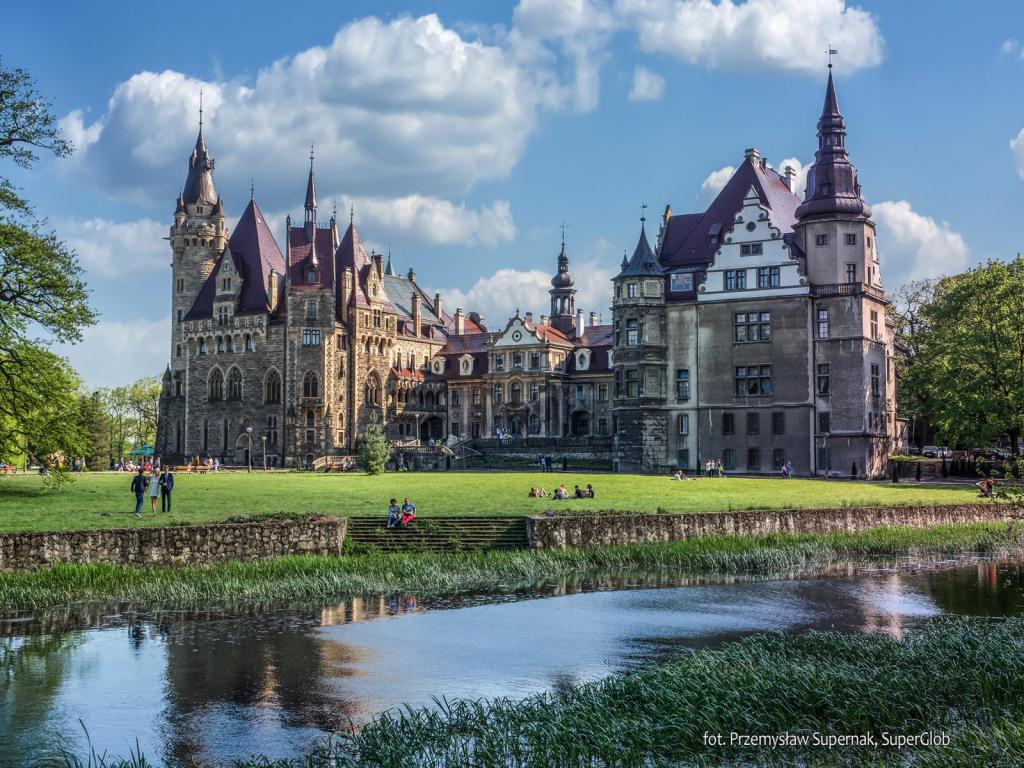 Pałac w Mosznej to jedna z najpiękniejszych tego typu budowli w Polsce i jedna z największych atrakcji Opolszczyzny. Choć to typowa rezydencja mieszkalna, jego oficjalna nazwa brzmi „Zamek w Mosznej”, co sugeruje budowlę obronną, którą nie jest. Z Opola prowadzi do niego długa trasa rowerowa doskonała na całodniową wycieczkę. Można też rozłożyć ja na 2 dni zostając na noc w hotelu znajdującym się w zamku. Moszna to nie jedyny pałac na trasie naszej wycieczki, bo odwiedzimy ich łącznie aż sześć. Oprócz atrakcji architektonicznych czeka nas też kontakt z naturą. Spora część trasy biegnie pięknymi Borami Niemodlińskimi. Z kolei w drodze powrotnej będziemy jechać wzdłuż Odry, nad którą swoje gniazda ma wiele ptaków wodnych.