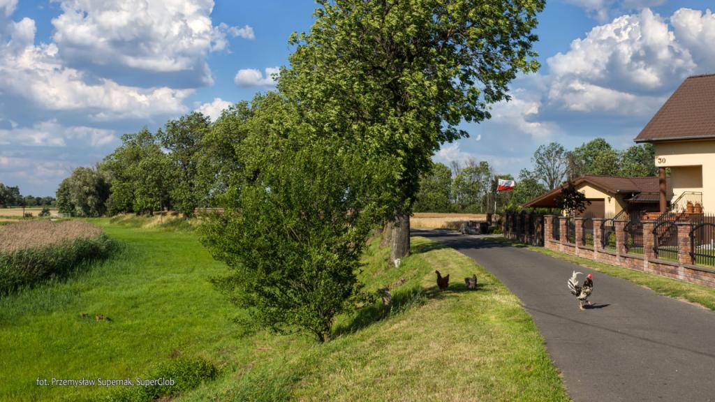 Przejeżdżamy obok kilku zabudowań wiejskich, przy których często pasą się krowy i wkrótce po prawej stronie ukazuje nam się malowniczy widok Odry z nadbrzeżnymi łąkami. Tutejsze łąki oraz wał nadrzeczny to siedlisko susłów, których nory dostrzeżemy z łatwością. Same zwierzęta niestety są bardzo płochliwe, więc trudno je spotkać. Jedziemy dalej polną drogą, która po kilkuset metrach biegnie groblą oddzielającą Odrę od Potoku Prószkowskiego i dojeżdżamy do asfaltowej drogi kończącej się w… Odrze. Kiedyś funkcjonował tu prom samochodowy przez rzekę. Stąd możemy jechać dalej prosto asfaltem, w stronę widocznego mostu nad śluzą w Chróścicach. Możemy też skręcić w lewo i dojechać do Naroku, w którym zobaczymy zabytkowy pałac i również zabytkowy Kościół św. Floriana z ciekawą drewnianą rzeźbą Chrystusa na Krzyżu. W tutejszym sklepie możemy też uzupełnić napoje. Opis jak dojechać – poniżej.